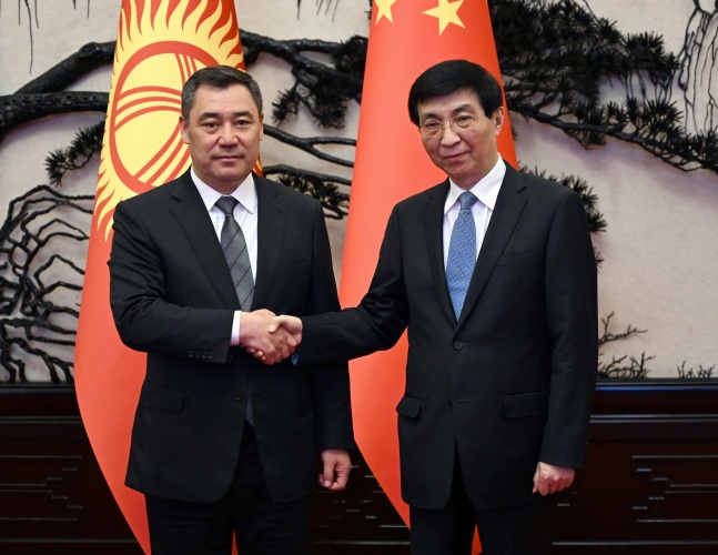 Президент Садыр Жапаров бүгүн Кытай Эл Республикасына болгон мамлекеттик сапарынын алкагында Пекин шаарында Кытай Элдик Саясий консультациялык кеңешинин Бүткүл Кытай комитетинин төрагасы Ван Хунин менен жолугушту.