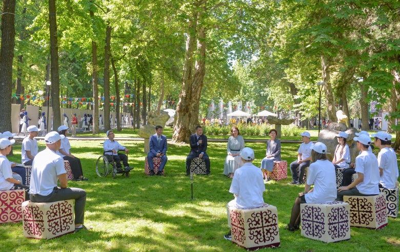 Жолугушууга окууда, чыгармачылыкта, спортто өзгөчөлөнгөн жана түрдүү предметтер боюнча эл аралык олимпиадаларда жогорку көрсөткүчтөргө жетишкен балдар катышты.