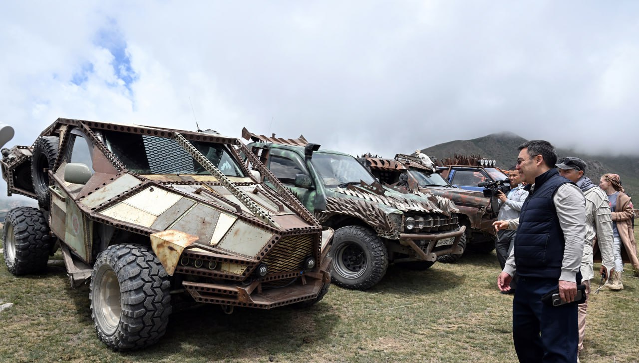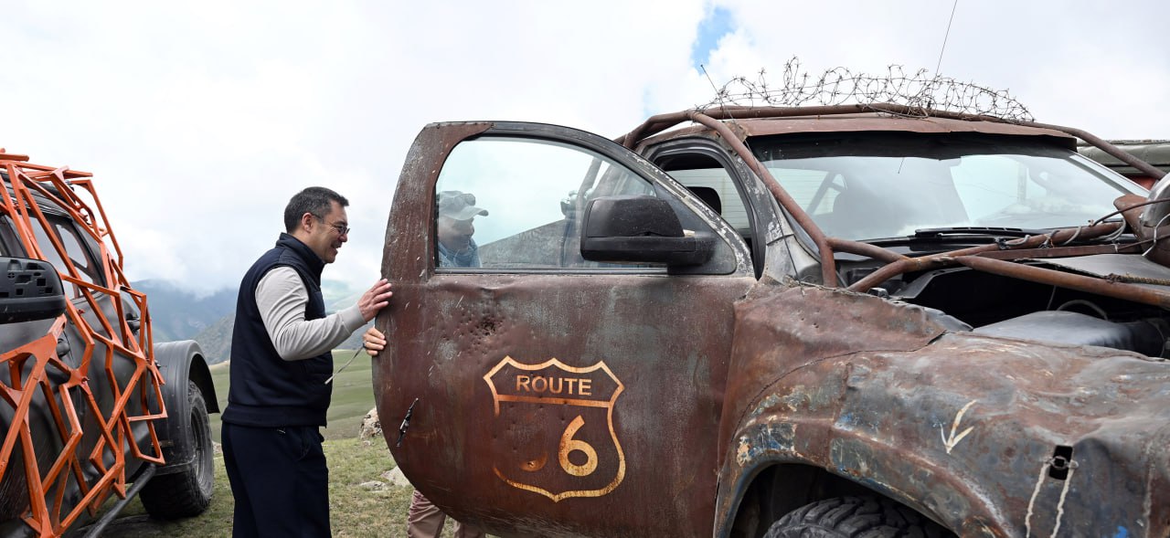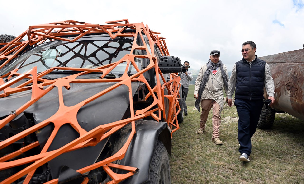 Мамлекет башчысы унаалардын бирин тоолуу жолдордо өзү айдап көрүп, эл аралык долбоордун катышуучулары менен да баарлашты.