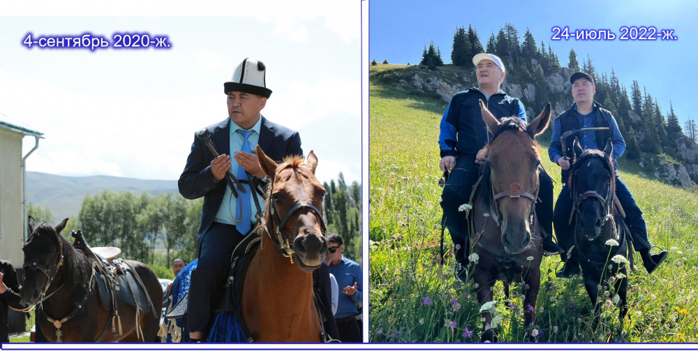 Кызыгы, кечээ Каркыра жайлоосунда эки достун ат минген сүрөттөрү тарады. Баамдасаңыз, 2020-жылы Кең-Сууда ыйгарылгандай Садыр Нуркожоевич кара ат, Камчыбек Кыджыршаевич тору ат минип жүргөнүн көрдүк.