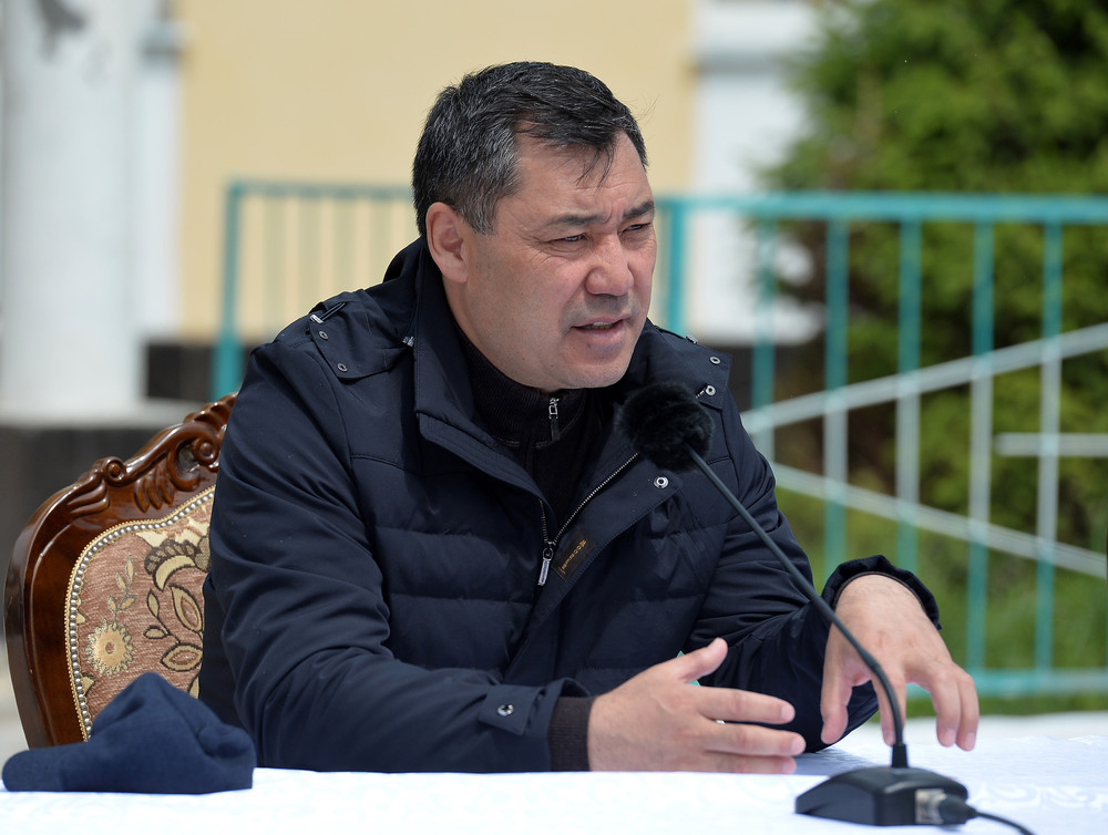 Өлкө башчы соода кылып жаткан жарандар менен баарлашууда. Президенттин маалымат катчысы Эрбол Султанбаевдин айтымында, Жапаров сатуучуларга кассалык аппарат боюнча түшүндүрүү иштерин өзү жүргүзүп жатат.