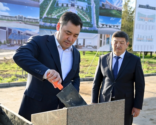 Куруучуларга кайрылып, Садыр Жапаров курулуш иштеринин сапаттуу жүргүзүлүшүнүн маанилүүлүгүн, бул имарат кылымдарды карытып, азыркыга эле эмес, кийинки муунга да кызмат кылышы керектигин белгиледи.
