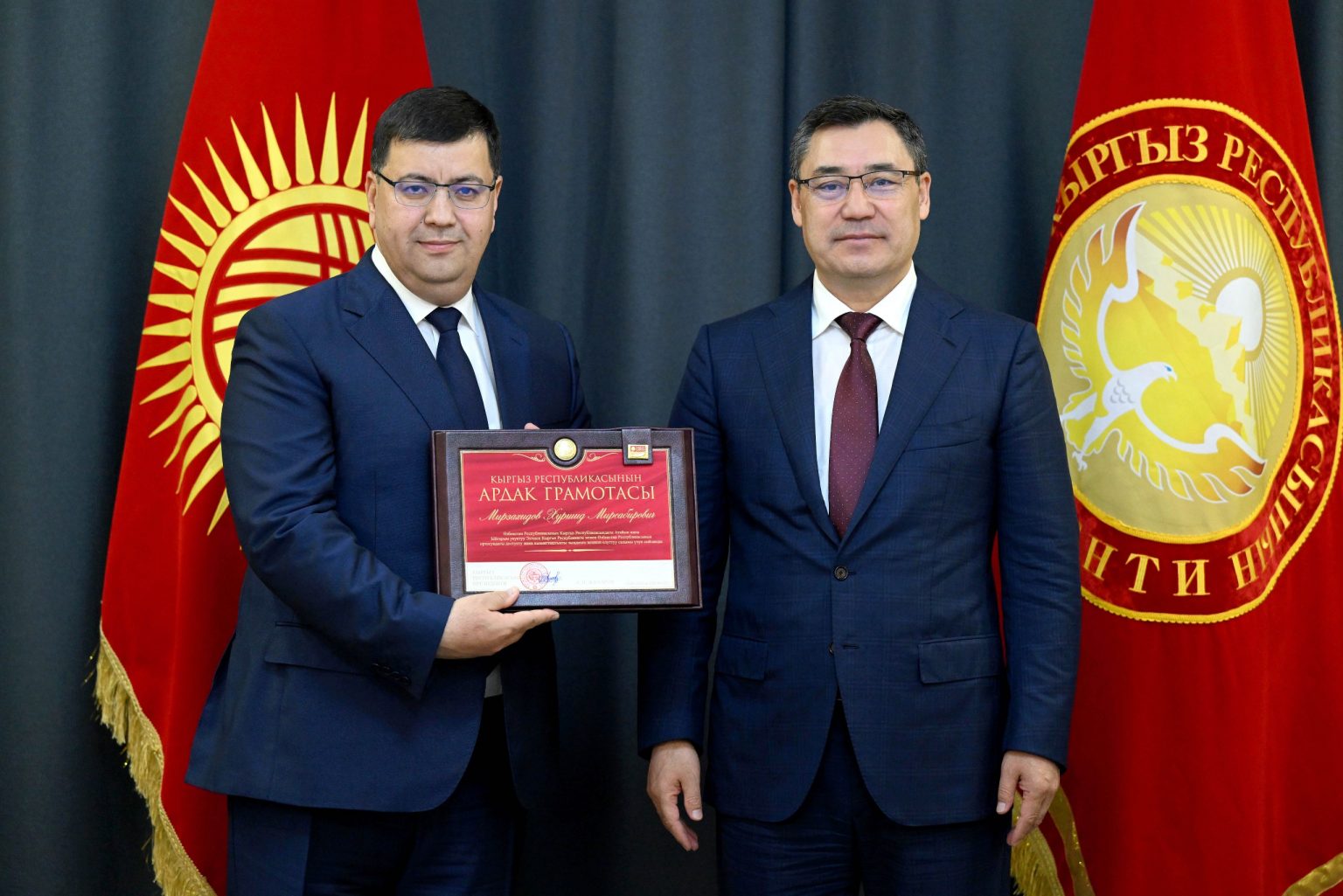 Сүйлөшүүнүн соңунда президент Садыр Жапаров эки өлкөнүн ортосундагы достукту жана кызматташтыкты чыңдоого кошкон олуттуу салымы үчүн Өзбекстан Республикасынын Кыргызстандагы Атайын жана Ыйгарым укуктуу Элчиси Хуршид Мирзахидовду Кыргыз Республикасынын Ардак грамотасы менен сыйлады.