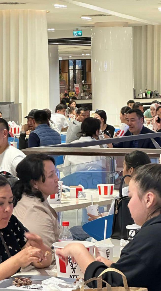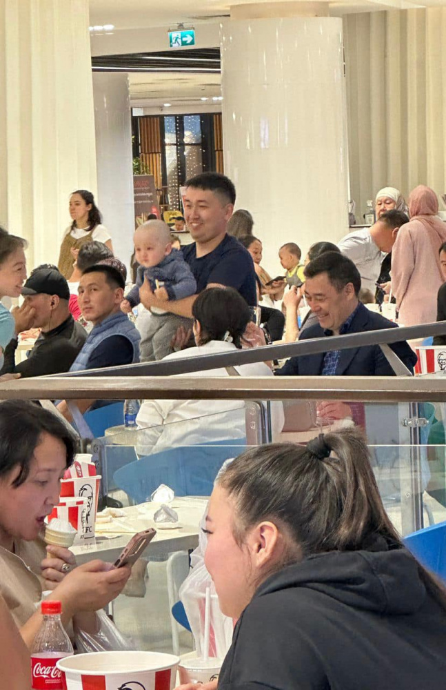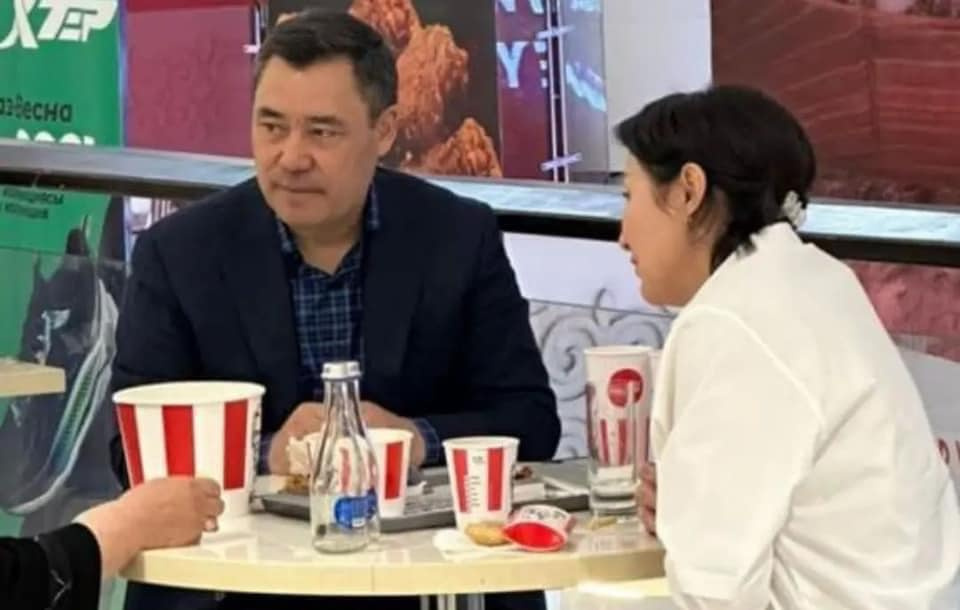 Бүгүн, 14-майда президент Садыр Жапаров менен анын жубайы Айгүл Жапарова Бишкектеги соода борборлорунун бирине барды. Күбөлөрдүн сүрөттөрүнө караганда, мамлекет башчы соода борбордо жүргөндөр менен баарлашып, «KFC» тез татымында түштөнгөн.