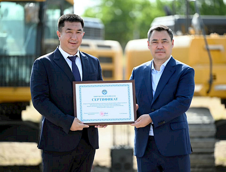 “Акыркы 3 жылда республика боюнча 1 000 чакырымдан ашык жол курулуп, оңдоодон өттү. Ушундай темпти сактоо менен бирге өлкөбүздүн булуң-бурчундагы жолдорубузду жакшыртууга жетишебиз. Ар бир долбоор өзгөчө көзөмөлгө алынып, жумуштар өз учурунда жана сапаттуу аткарылышы зарыл! Алдыбызда масштабдуу, бийик жоопкерчиликти талап кылган ири долбоорлор турат. Мен сиздердей чыныгы кесипкөй адистер менен Кыргызстандын өнүгүшүн шарттай турган асыл максаттарыбызга жетебиз, деп бекем ишенем”, - деп, президент Садыр Жапаров транспорт жана коммуникациялар министри Тилек Текебаевге жол-курулуш техникасынын сертификатын тапшырды.