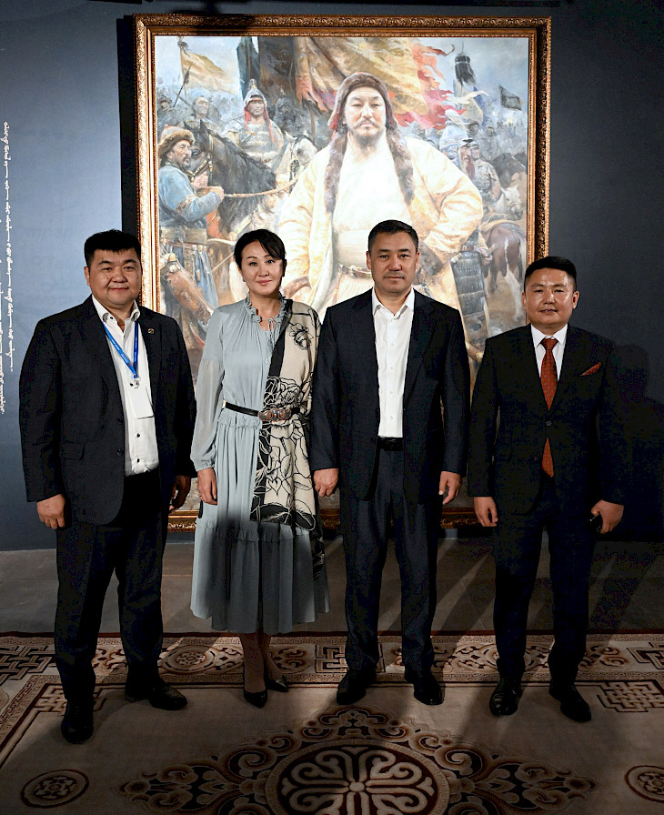 Мамлекет башчысына музейдин жаралуу тарыхы жана анын экспонаттары, көргөзмөгө коюлган эстеликтер, хандардын жана ак сөөктөрдүн, ошондой эле Чыңгызхандын династиясынын тарыхын чагылдырган артефакттар тууралуу айтып беришти.