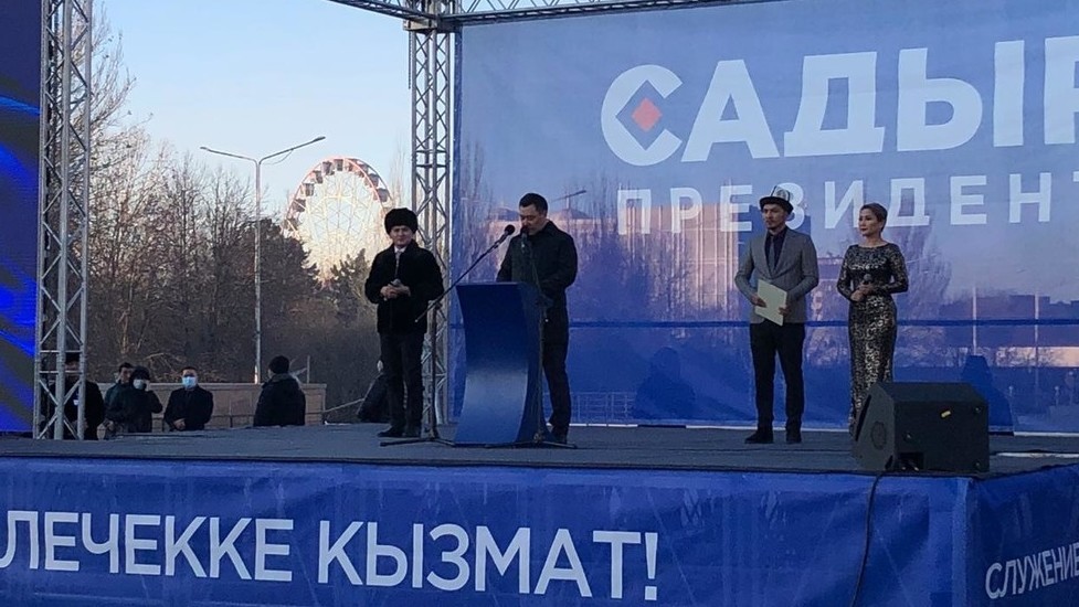 Аянтка чогулган адамдардын саны болжол менен 1 миңге жетти. Алардын алдында Садыр Жапаров сөз сүйлөдү: