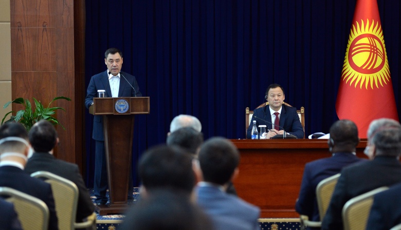 Жыйындын жүрүшүндө Садыр Жапаров сөз сүйлөп, чет өлкөлүк өкүлдөргө кайрылды.