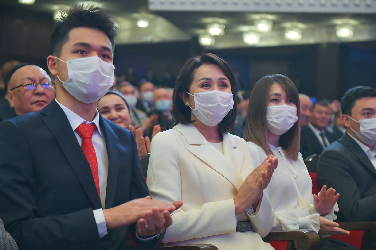 Садыр Жапаровдун иш-чарасына анын үй-бүлөсү келген. Жубайы Айгүл Жапарова дагы катышты.