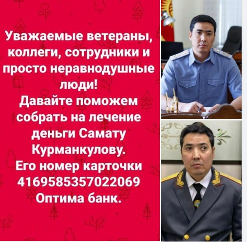 Чүй облустук милициясынын мурдагы жетекчиси Самат Курманкулов мурдагы президент Алмазбек Атамбаевди кармоо учурундагы операцияда башына таш тийип жабыркаган. Жандандырууга түшүп калган милиционер-жетекчиге Бишкек шаардык травматология жана ортопедия илим изилдөө борборунда эки ирет операция жасалып, Москвадан да адистер чакырылган. Кийин аталган шаарга которулуп, дарылануусун уланткан. Бир аз убакыттан кийин Курманкулов өзүнө келип, абалы жакшыра баштаганы белгилүү болгон.