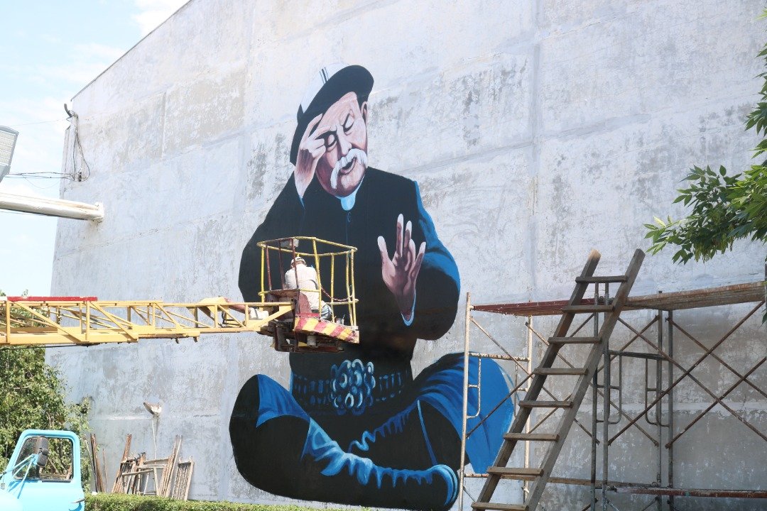 "Бишкек жылуулук" коммуналдык ишканасынын имаратынын дубалына улуу манасчы Саякбай Каралаевдин сүрөтү тартылууда. Бул тууралуу мэриядан кабарлашты.