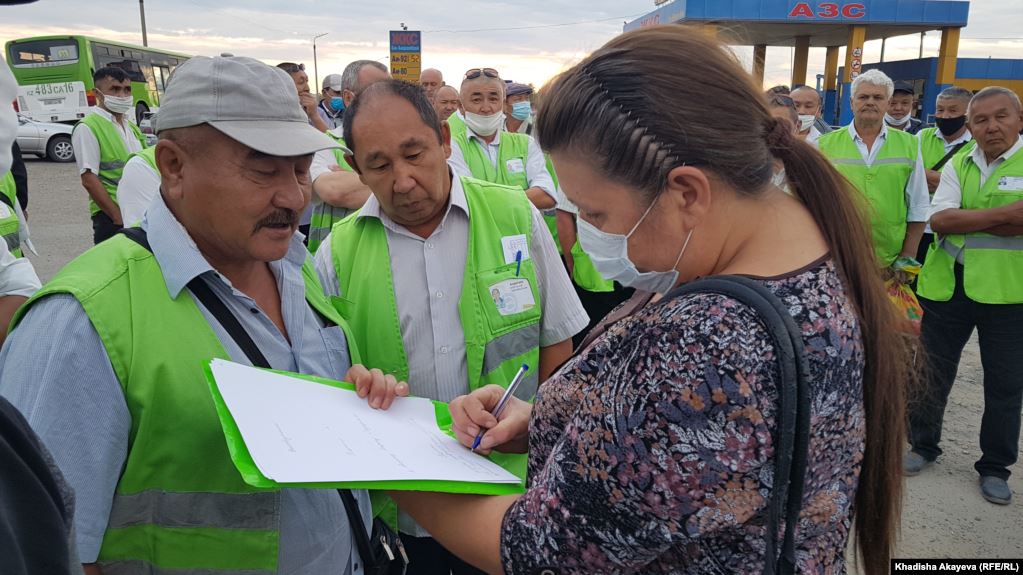 Алардын айтымында, келишим боюнча айдоочулар күнүнө 10 миң теңгеден (23 доллар) алышы керек болсо, бул айда аларга 4-5 миң теңгеден гана берилүүдө.