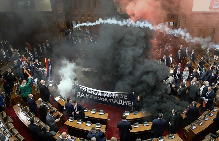 Сербия парламентинин депутаттарынын ортосунда ызы-чуу чыкты.