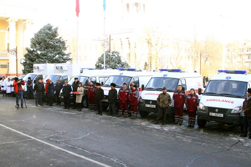 Анын ичинде керектүү дарылоочу-диагностикалык жабдуусу бар 6 тез жардам унаасы, атайылаштырылган 2 сүт ташуучу унаа жана шаардын социалдык коргоо кызматына 1 унаа берилди.