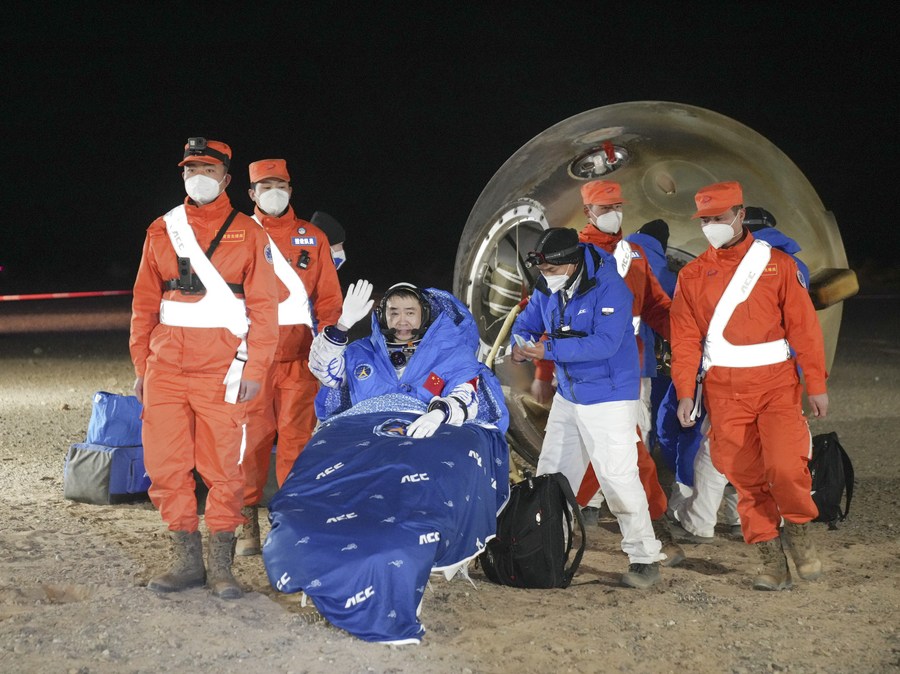 Кытайдын «Шэньчжоу-14» космостук кемесинин үч экипаж мүчөсү - Чэнь Дун, Лю Ян жана Цай Сюйчжэ 5-декабрда атайын учуу менен Бээжинге аман-эсен келишти, деп билдирди Кытайдын Адам башкарылган космостук программасынын кеңсеси. Бул тууралуу маалыматты NazaNewsка Кытайдын CCTV-plus мааалымат агенттиги тастыктады.