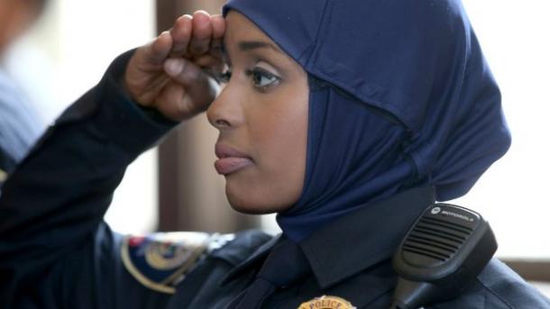 Англиянын борбор калаасы Лондондо да полиция, 2001-жылы ар башка этникалык тектеги адамдарды полиция кызматкери болууга шыктандыруу үчүн хиджабды расмий форманын «опциялык» бир бөлүгүнө айландырган.