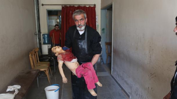 Кол салууда каза болгон жарандардын арасында балдар менен аялдар да бар. Абадан кол салууда ДЕАШ мүчөсү үч террорист да каза болду. Оппозициячылдар кол салууда эң аз төрт имараттын жер менен бир болгондугун, көп сандаган кишинин да жаралангандыгын билдирди.