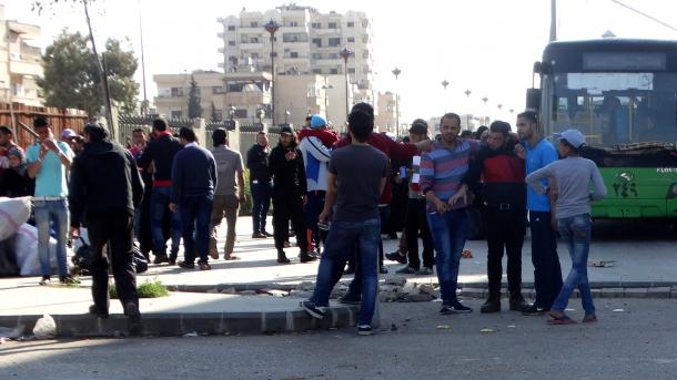 Сирияда курчоого алынган аймактагы эвакуация учурунда жасалган жана 126 киши каза болгон кол салуудан кийин токтотулган эвакуация кайрадан башталды.