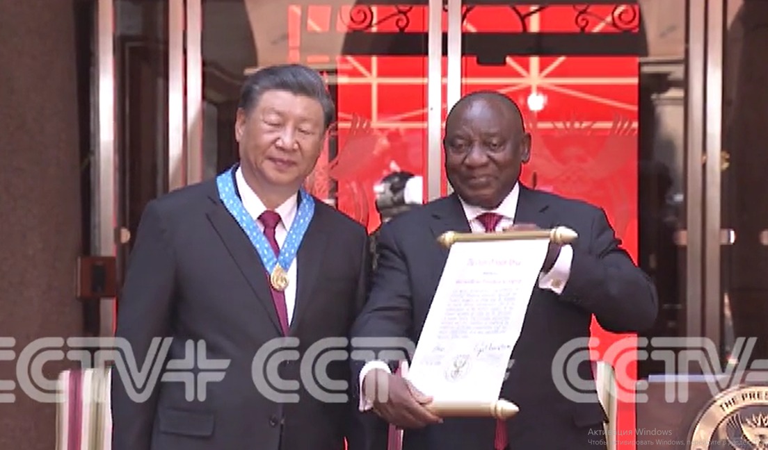 Түштүк Африканын президенти Сирил Рамафоса 22-август шейшемби күнү Преторияда Кытайдын төрагасы Си Цзиньпинге Түштүк Африканын орденин тапшырды. Бул тууралуу NazarNews маалымат агенттигине Кытайдын CCTV-plus агенттиги билдирди.