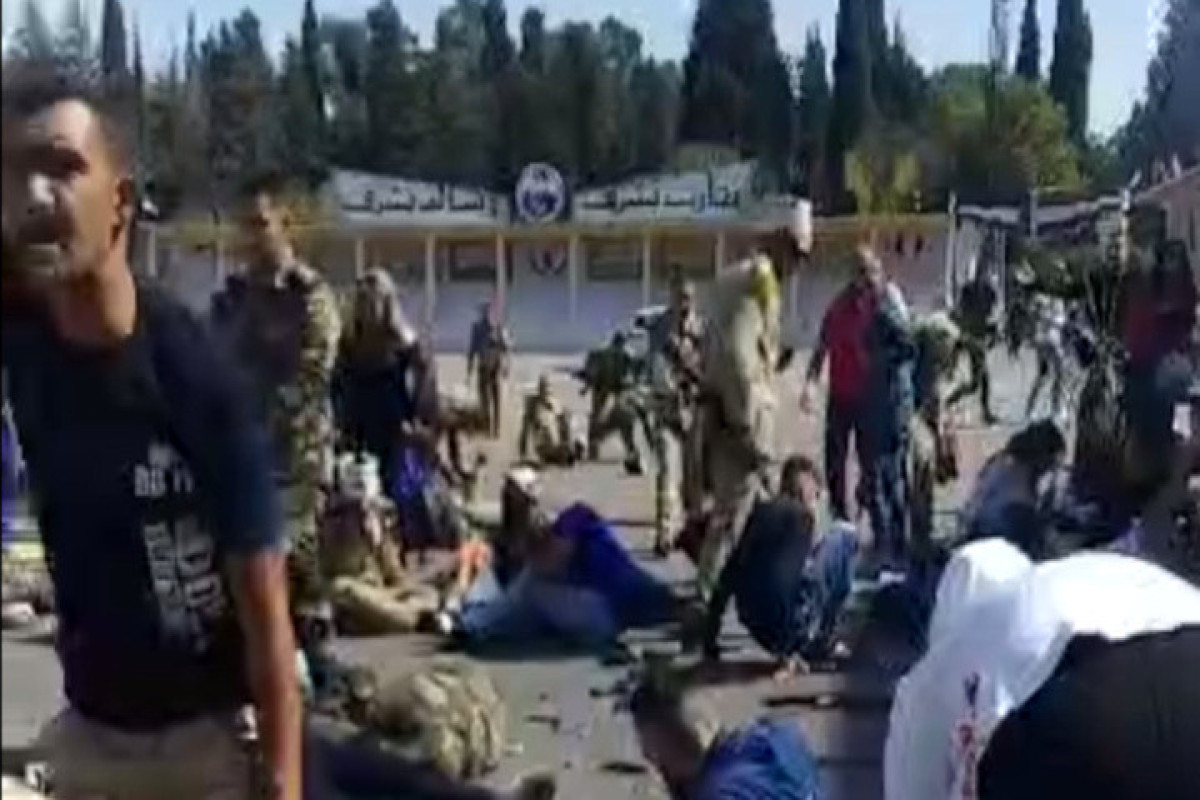 Кол салуу аскер кызматкерлери жана алардын жакындары катышкан бүтүрүү аземи учурунда болгон. Reuters агенттиги аземге Сириянын коргоо министри Али Махмуд Аббастын да катышканын жазды. Агенттиктин маалыматына караганда, ал иш-чарадан учкучсуз учактын чабуулунан бир нече мүнөт мурун чыгып кеткен.
