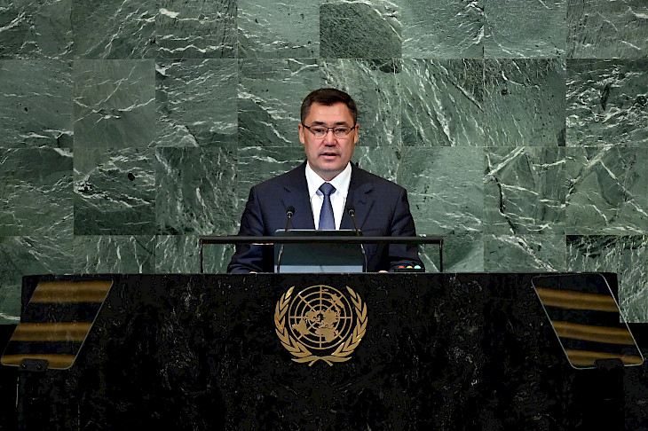 Эскертке кетсек, президент Садыр Жапаров 20-сентябрда Нью-Йорк шаарында БУУнун Башкы ассамблеясынын 77-сессиясынын жалпы дебаттарында сөз сүйлөгөн.