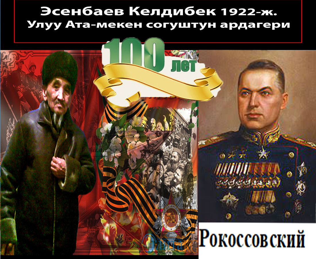 Согуш өрт, картадагы ар бир миллиметрди маршалдар менен Сталин жылдырганда, канча миңдеген адамдарды курмандыкка чалып атат? Согуш бүткөн соң согуштун кыйынчылыгын көргөн катардагы адамдар өз иштери менен алек болуп, маршалдар пайдасын көргөн. Ушундай катардагы жоокердин бири Эсенбаев Келдибек тирүү болгондо 100 жашка толмок. Согуштун азап-муңун, жаракатын тартып жүрүп 2015-жылы 21-июлда жарык дүйнө менен кош айтышкан. Армиянын генералы кийин маршал болгон Рокоссовский башында турган Белорус фронтунда согушкан.