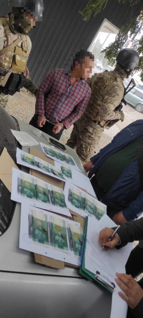 Кармоо учурунда анын шымынын оң чөнтөгүнөн арыз ээсинен алган 80 миң сом акча далил катары алынды.