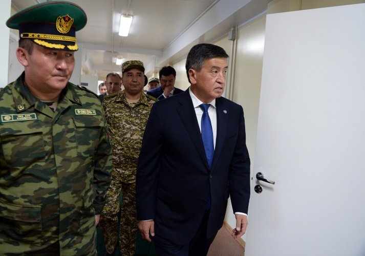 Жаңы комплексти кыдырып чыгып Президент Сооронбай Жээнбеков чек арачылар менен бирге жоокердин тамагынан ооз тийди, чек арачынын үй-бүлөсү менен чай ичип, жергиликтүү жашоочулар менен аңгемелешти.