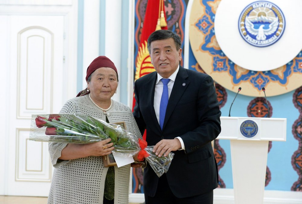 Кыргыз Республикасынын Президенти Сооронбай Жээнбеков бүгүн, 18-майда Энелер күнү майрамынын алдында уюштурулган салтанаттуу аземде Кыргызстандын баардык аймактарынан келген көп балалуу энелерди “Баатыр Эне” ордени менен сыйлады жана Кыргызстанды эл аралык аренада татыктуу тааныткан жана өлкөнүн ар тараптуу өнүгүүсүнө зор салым кошуп келе жаткан кыргызстандыктардын энелерине алкыш баракчаларын тапшырды.