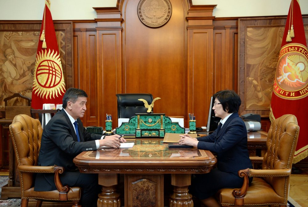 Кыргыз Республикасынын Президенти Сооронбай Жээнбеков бүгүн, 24-апрелде өлкөнүн Жогорку сотунун төрайымы Айнаш Токбаева менен жолукту. Бул тууралуу президенттик аппараттын басма-сөз кызматы билдирди.