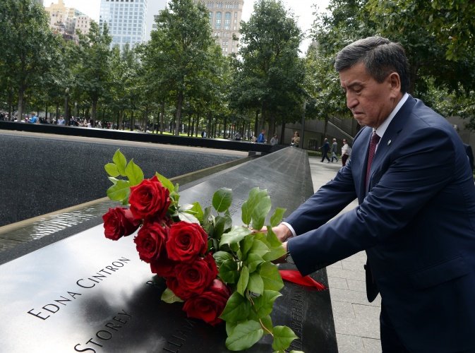 Кыргыз Республикасынын Президенти Сооронбай Жээнбеков АКШнын Нью-Йорк шаарындагы 2001-жылы Дүйнөлүк соода борборунун талкаланган мунараларынын ордуна теракттын кесепетинен курман болгон адамдарды эскерүү үчүн орнотулган «11-сентябрь» Улуттук мемориалына гүл койду.