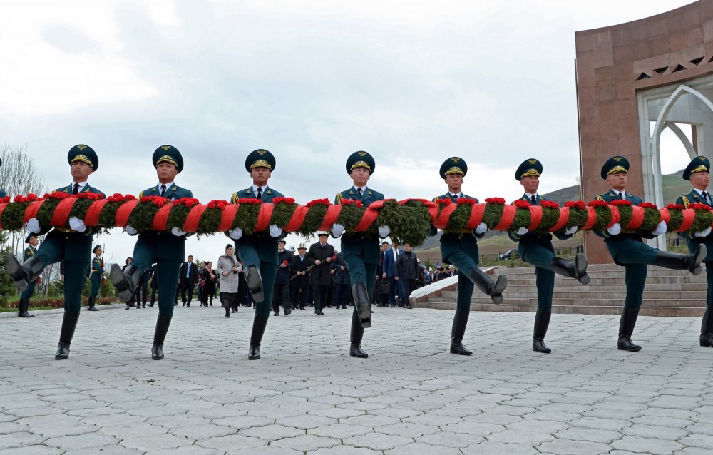 Кыргыз Республикасынын Президенти Сооронбай Жээнбеков бүгүн, 7-ноябрда Тарых жана ата-бабаларды эскерүү күндөрүнө байланыштуу “Ата-Бейит” мемориалдык комплексинде ата-бабаларга жана комплекске коюлган мекендештерге арнап куран окуп, эстеликтерге гүлчамбар койду.
