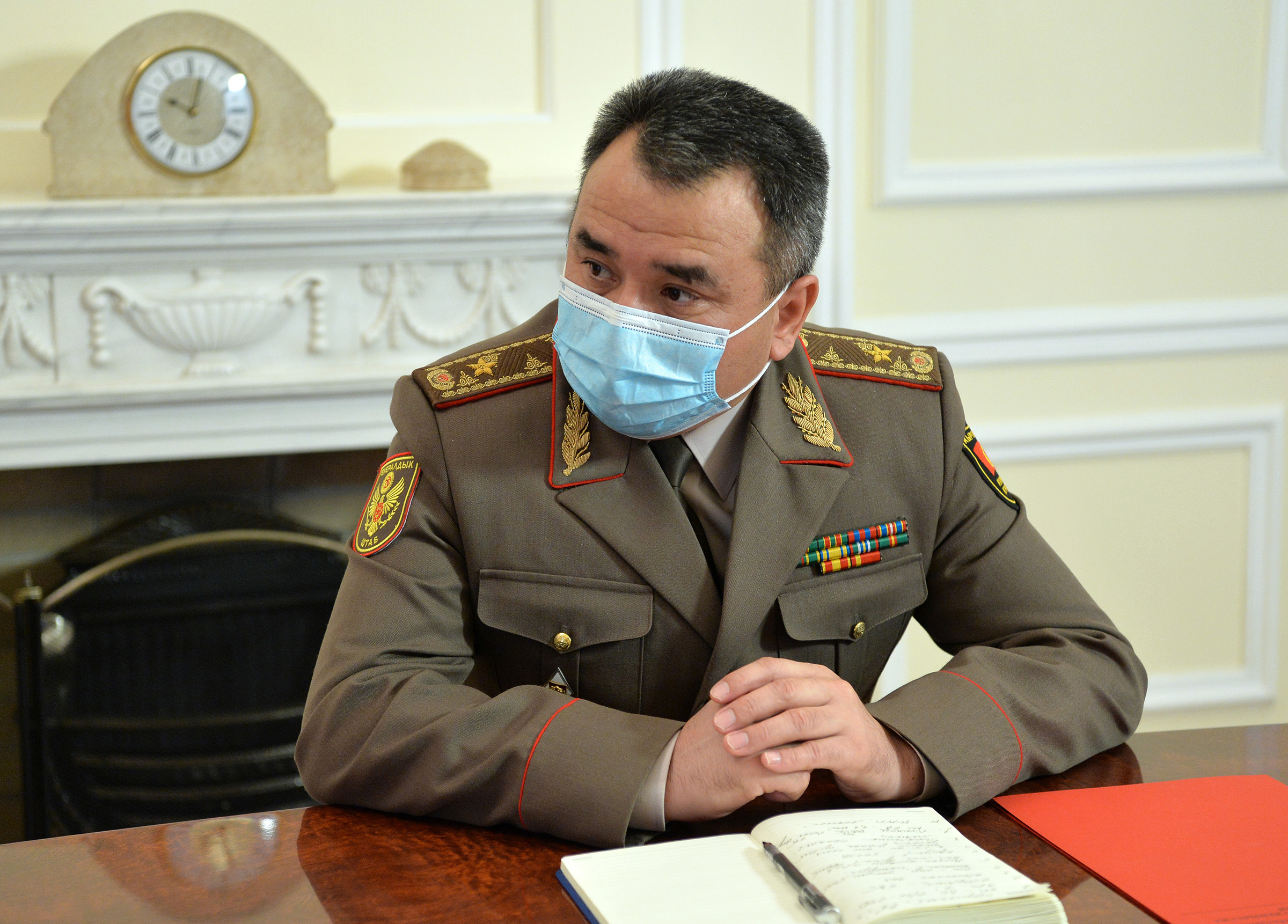 Куралдуу күчтөрдүн Башкы штабынын башчысы Райимберди Дүйшөнбиев инфекция менен күрөшүүдө Куралдуу күчтөрдүн ички иштер органдары, улуттук коопсуздук, жарандык коргонуу жана башка тартылган мамлекеттик органдар менен өз ара ыкчам аракеттешүүсү боюнча чаралар жөнүндө маалымат берди.