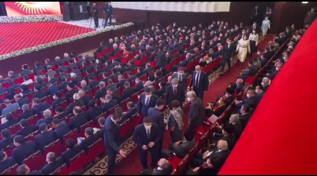 Бүгүн, 28-январда Бишкектеги Токтогул Сатылганов атындагы Кыргыз улуттук филармониясында президент болуп шайланган Садыр Жапаровдун инаугурациясы башталды. Ага экс-президент Сооронбай Жээнбеков да келди.
