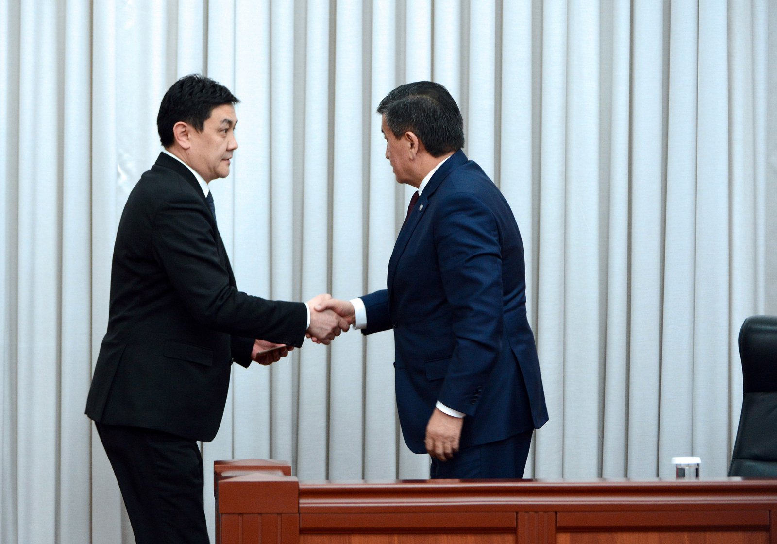 Кыргыз Республикасынын Президенти Сооронбай Жээнбеков бүгүн, 28-февралда Кыргыз Республикасынын Жогорку Кеңешинин жыйынында Кыргыз Республикасынын Өкмөтүнүн жаңы мүчөсүнүн ант берүү аземине катышты.