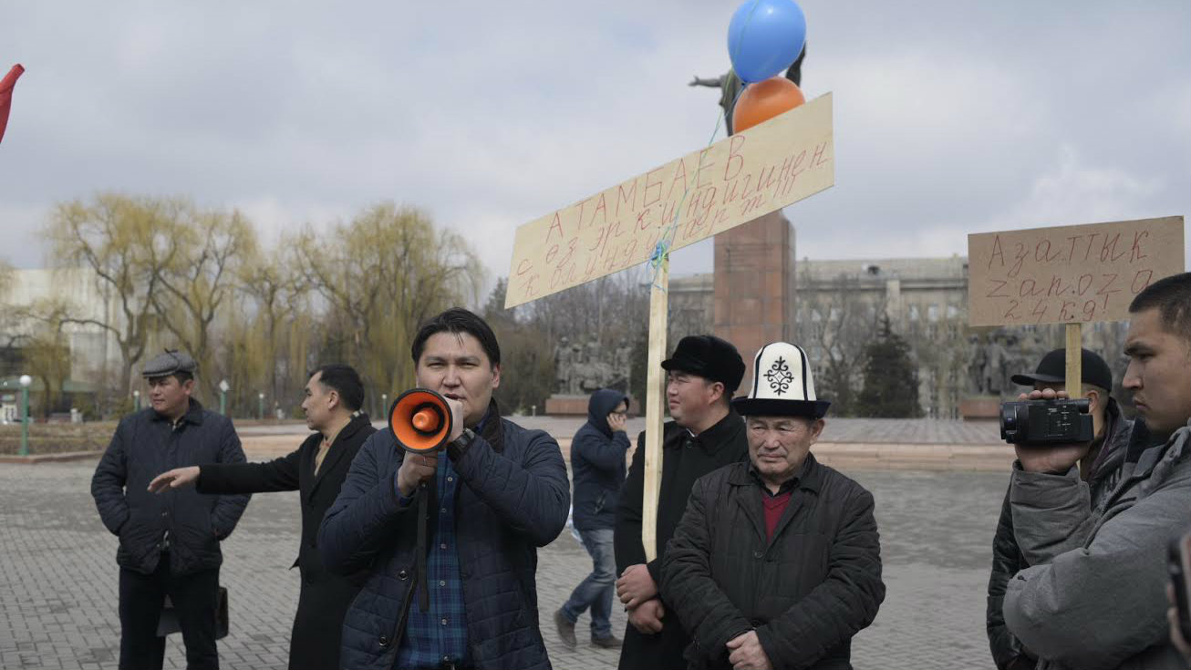 Аталган митингде "Жогорку Соттун төрайымы Айнаш Токбаева, Генералдык Прокурор Индира Жолдубаева кетсин!" -деген плакаттарды көтөрүп, алардын иштен кетүүсүн талап кылып, кыйкырышууда. Ошондой эле, абакта эч күнөөсү жоктор да жатканын карапайым калктан чыккандар айтышууда.
