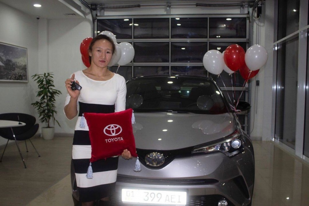 Көлбаев мындан 6 жыл мурун Тыныбекова Парижден Дүйнө чемпионатында 3-орунду ээлеп, коло медаль алганда, Toyota CHR маркасындагы жаңы машина тартуулаган.