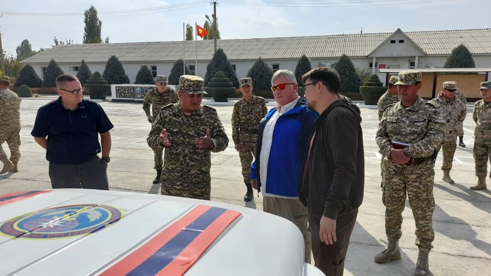Маалыматка ылайык, делегацияны КР өзгөчө кырдаалдар министринин орун басары полковник Урматбек Шамырканов баштаган жетекчилик курам тосуп алды.