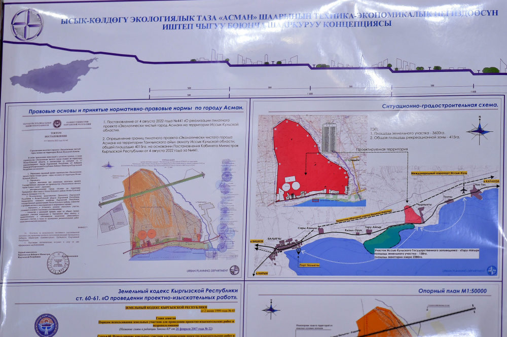 Жыйында "Асман экологиялык таза шаары" долбоорунун үч концепциясы талкууланды. Аларды Кыргыз мамлекеттик курулуш жана архитектура университети, Долбоорлоо илимий-изилдөө институтунун Ысык-Көл филиалы жана "Кыргызреставрация" ишканасы даярдашкан.