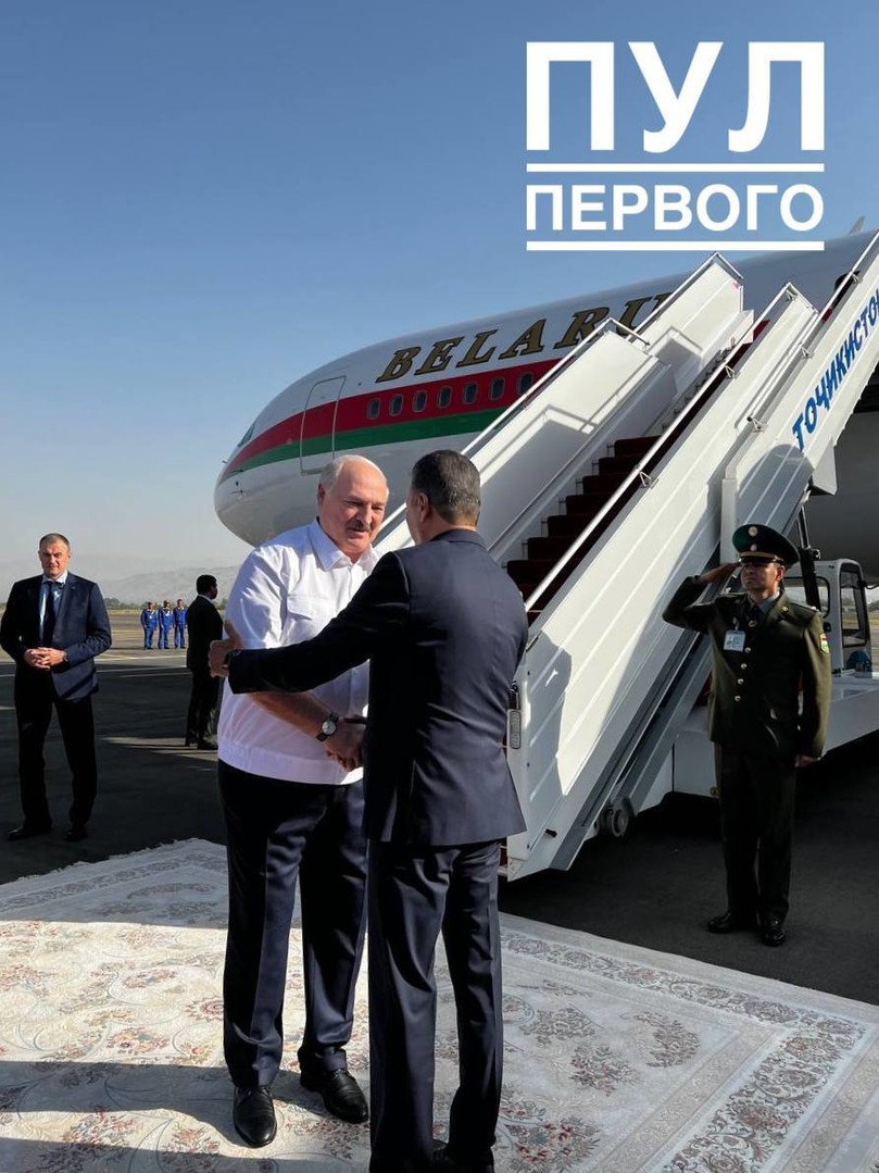 Учактын өтүүчү тилкесинде Беларусь лидерин премьер-министр Кохир Расулзода, айыл чарба министри Сахди Каримзода жана тышкы иштер министринин орун басары Имоми Содик Ашурбойзода тосуп алышты.