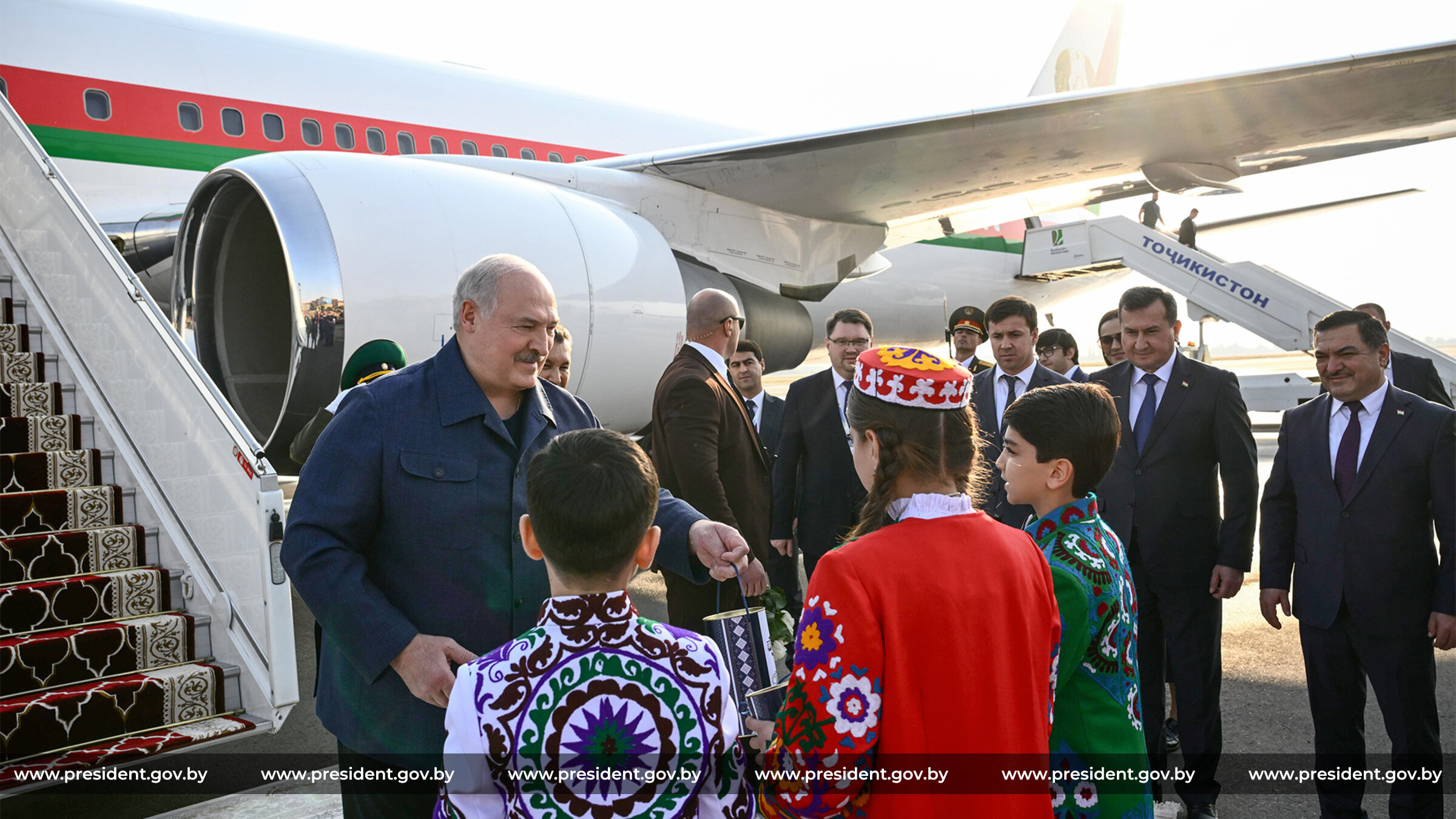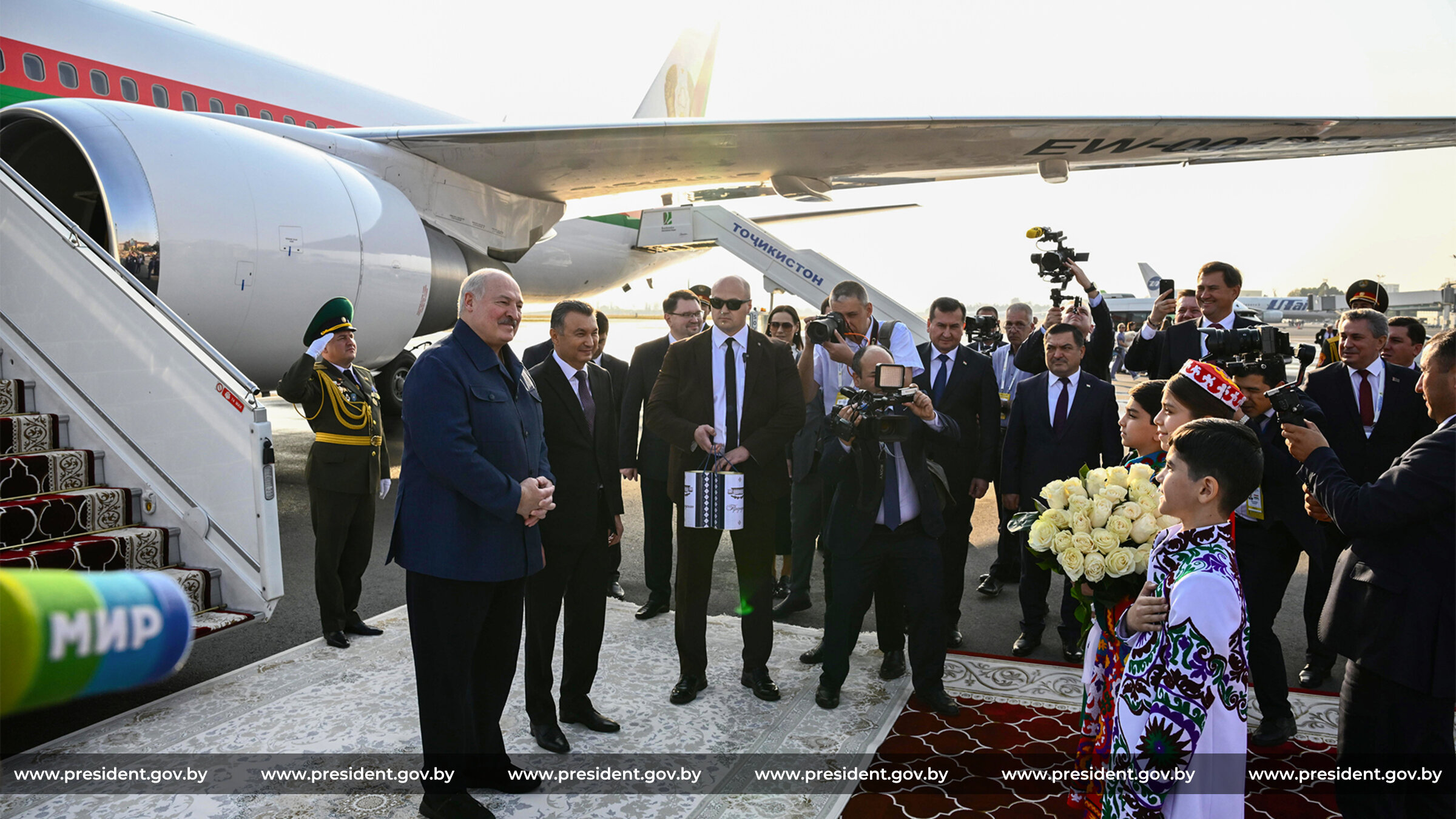 Дүйшөмбү аэропортунан Александр Лукашенкону Тажикстандын премьер-министри Кохир Расулзода, Беларустун тышкы иштер министри Максим Рыженков, Беларустун Тажикстандагы элчиси Виктор Денисенко жана башка расмий адамдар тосуп алышты.