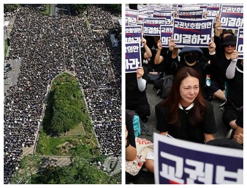4-сентябрда Түштүк Кореяда 120 миңге жакын мектеп мугалимдери ата-энелердин жана окуучулардын куугунтугунан жапа чеккен бир катар мугалимдердин өз жанын кыюу фактыларына байланыштуу өлкө боюнча масштабдуу митингдерди өткөрүштү. Бул тууралуу Reuters басылмасы билдирет.