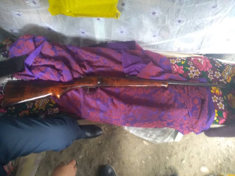 Сүрөттө: алынган "ТОЗ-16" үлгүсүндөгү курал жана кармалган шектүү С.Н.