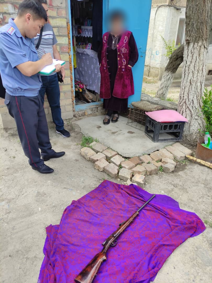 Жүргүзүлгөн ыкчам иликтөө иш-чаралардын натыйжасында, Ош шаарынын 1963-жылы туулган жашоочусу 1963-ж.т. С. Н. ок атуучу 5.6 мм калибрдеги "ТОЗ-16" үлгүсүндөгү сайлуу мылтыкты 90 миӊге баалап, сатып өткөрүп жаткан учурда кармалды. Кармалган аял ок атуучу курал маркум атасынан калгандыгын жана акча зарыл болгондуктан сатуу ниети пайда болгондугун билдирди.