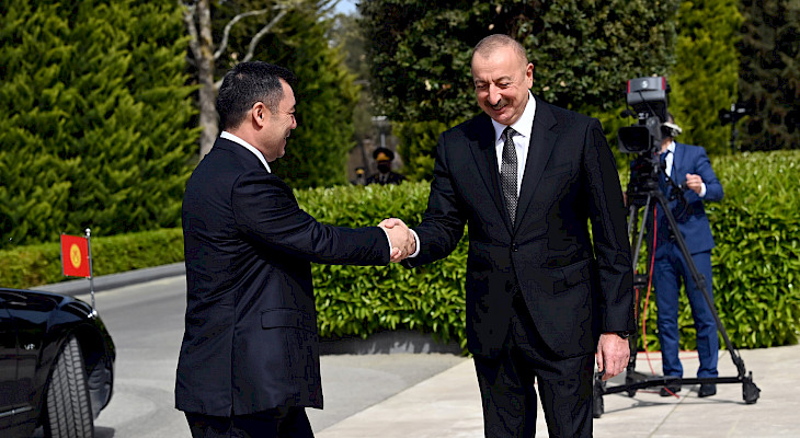Бүгүн, 20-апрелде Баку шаарындагы “Загулба” президенттик сарайында Кыргыз Республикасынын Президенти Садыр Жапаров менен Азербайжан Республикасынын Президенти Ильхам Алиевдин расмий жолугушуу аземи болду.