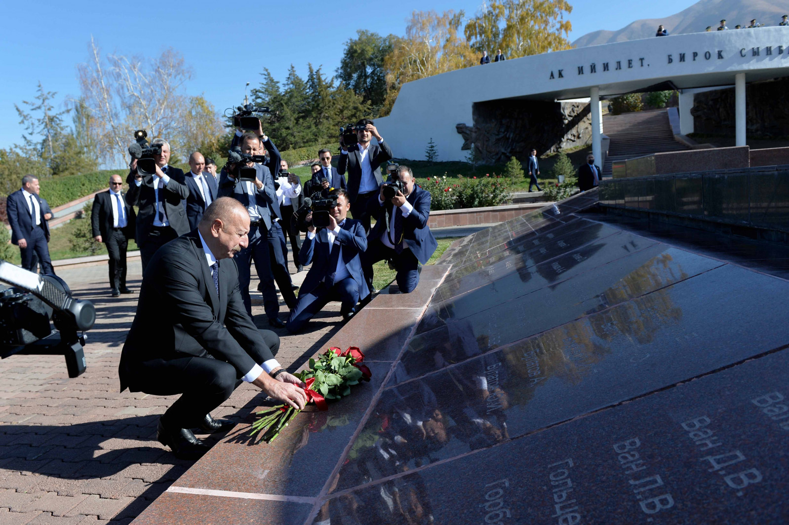 Азербайжандын президенти Ильхам Алиев Кыргызстанга мамлекеттик сапарынын алкагында «Ата-Бейит» улуттук тарыхый-мемориалдык комплексине барды. Бул тууралуу министрлер кабинетинин басма сөз кызматы билдирди.