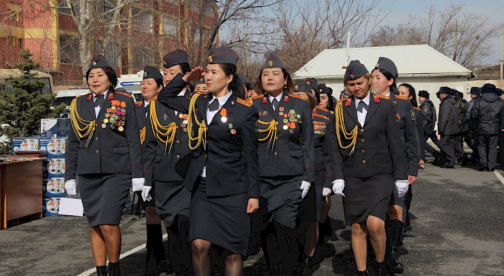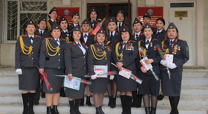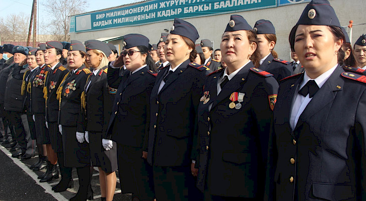 «Милиция кызматынын ар кандай оор түйшүктөрүн, күжүрмөн эмгегин аркалап келе жаткан кызматкерлердин арасында эр азаматтардан кем калышпай, алардын катарында жарашыктуу милициянын кийимдерин кийген, ыйык Мекен алдында ант берген кыз-келиндерибиз менен биз сыймыктанабыз. Кыргыз тукумун улаган энесиздер!