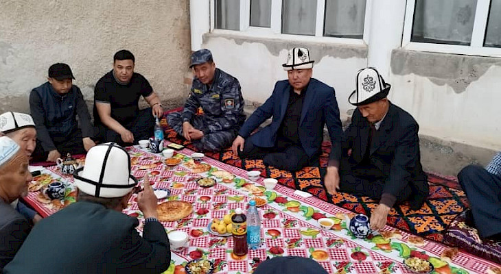 Президенттин Баткен облусундагы ыйгарым укуктуу өкүлү Абдикарим Алимбаев Лейлек районунун Жаштык айылынын эли менен жолугушуп, биргеликте ыйык Рамазан айынын урматына өткөрүлгөн ооз ачууга катышты.