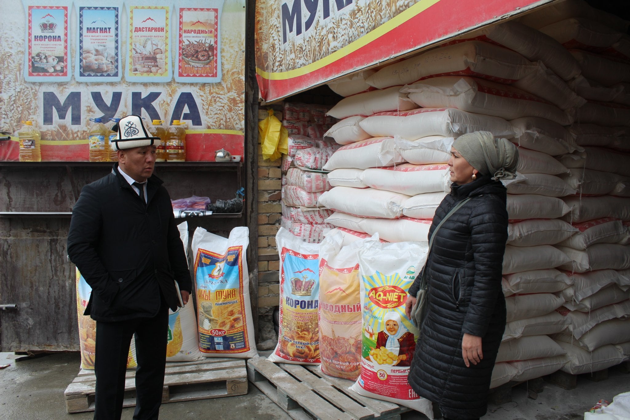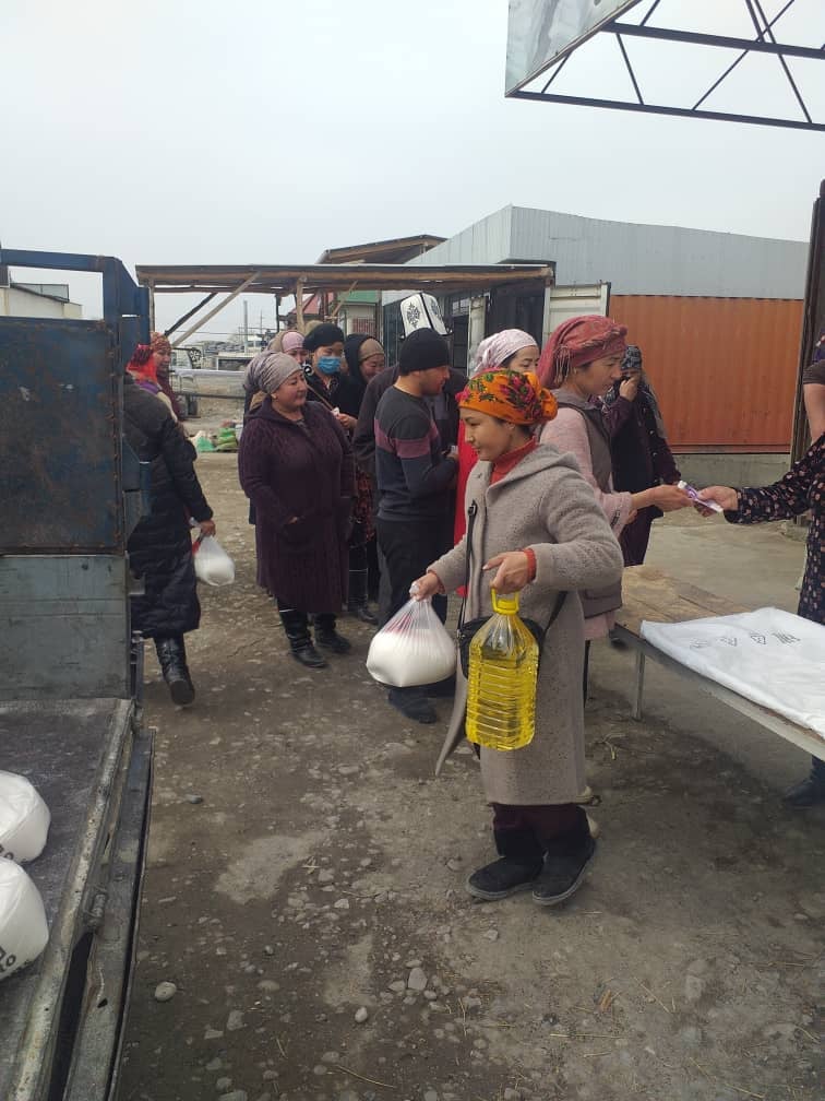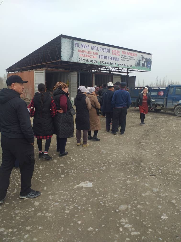 Азык-түлүктөр райондук мамлекеттик администрациялардын, шаардык мэриялардын уюштуруусу менен жер-жерлерде сатылып жатат.