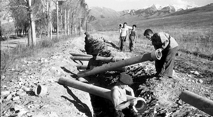 Маалымат үчүн: 1929-жылы 9 чакырым узундуктагы биринчи суу түтүгү ишке киргизилип, ал шаарга 2,8 миң куб метр өлчөмүндөгү жыгач түтүк аркылуу ичүүчү сууну берген.